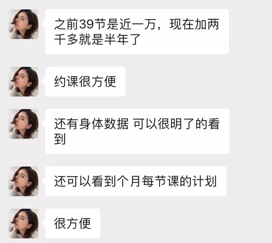 一开始我还有隐隐的担心,可是没想到,现在这里变得比以前更棒了。不仅场馆更宽敞,约课更方便,更重要的是给会员带来了实实在在的好处!以前一周3-4节课,三个月就要花费近万元的私教费。现在相同的价格,相同的锻炼频次,我能锻炼的时间更久,细算下来,真的超级实惠。